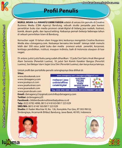 www.cbmagency.com Copyright © All Rights Reserved/Penerbit: Luxima/cbmagency.com Copyright © All Rights Reserved/Penerbit: Luxima/cbmagency.com 1997 lalu memulai pekerjaan di bidang penerbitan dan buku pada tahun 2002 di Naskah: Nurul Ihsan/Ilustrasi: Tim studio CBM Agency Studio/Desain: Yuyus Rusamsi
